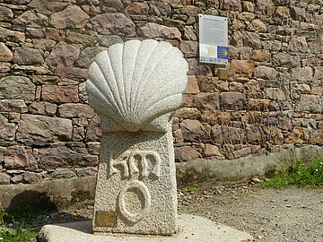 The scallop shell that can be seen in the grounds opens the route taken each year by a few dozen pilgrims. Over 1550 miles (2500 km) lie before them for an extraordinary life experience.