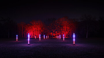 Lointains est un dispositif lumineux et sonore qui invite aux regards, à se perdre entre le premier plan et l’arrière plan, à découvrir et redécouvrir les espaces soulignés par la mise en lumière animée et dynamique.