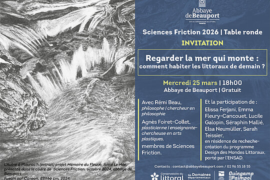 La table ronde sera animée par Rémi Beau (philosophe | chercheur en philosophie) et Agnès Foiret-Collet (plasticienne | enseignante-chercheuse en arts plastiques), membres de Sciences Friction, avec la participation des résidents du programme de recherche-création Design des Mondes Littoraux, porté par l’École Nationale des Arts Décoratifs : Elissa Ferjani | designer ; Emma Fleury-Cancouet | artiste ; Lucile Galopin | paysagiste ; Séraphin Mallié | paysagiste ; Elsa Neumüller | architecte ; Sarah Teissier | designer.