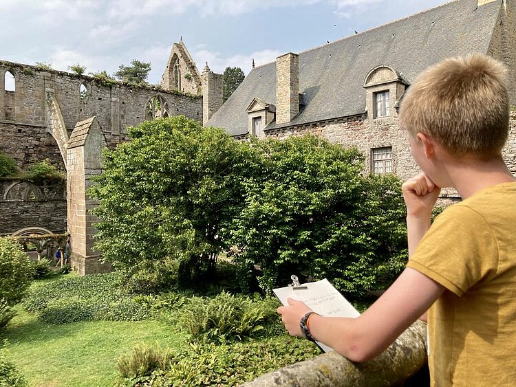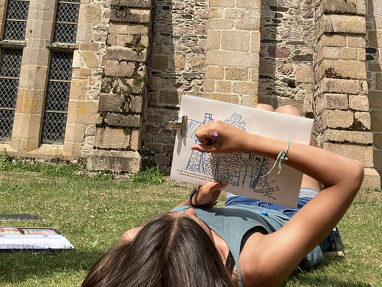 Accompagnés par les plasticiens-médiateurs de Patrimoine à Roulettes, les jeunes de l'agglomération Guingamp-Paimpol se sont essayés à diverses techniques de dessin (fusain, brou de noix, pastel...) et ont exploré tous les recoins de Beauport. Nuit dans la salle capitulaire, grimpe dans les platanes, repas médiéval... durant ce séjour, les jeunes ont pu découvrir le patrimoine par le biais de la pratique artistique et d'expérimentations inédites.
