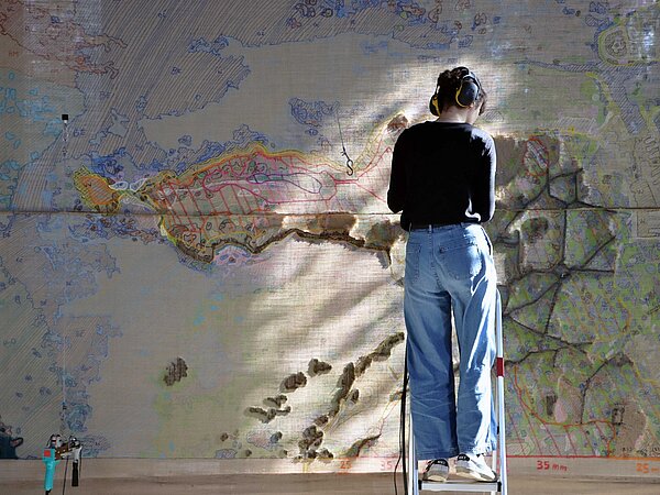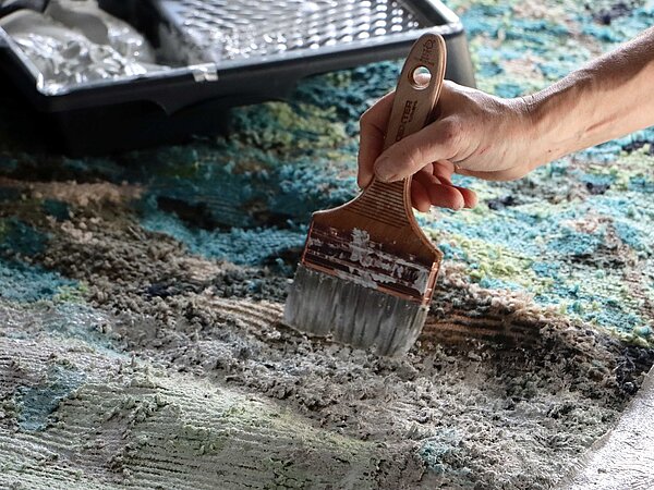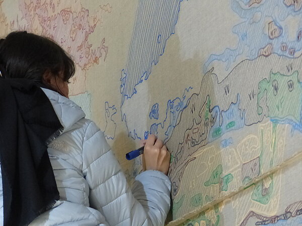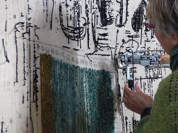 Pays’Âges est un projet participatif : les habitants ont été invités à apprendre aux côtés de Dorian Etienne les techniques du touffetage et de la teinture végétale, puis à participer quotidiennement à la mise en lumière de leur territoire par la réalisation de l’œuvre.