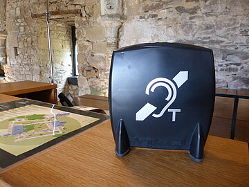 Une boucle magnétique est installée à l'accueil de l'abbaye, pour échanger clairement avec le personnel et poser vos questions.